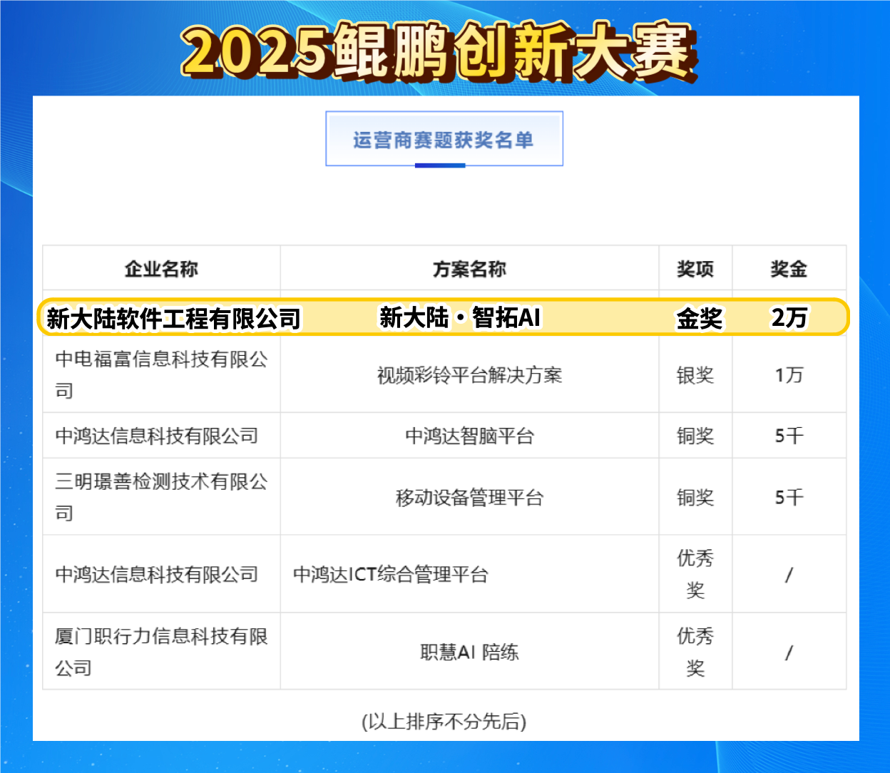 近日,新大陸軟件攜自主研發(fā)的新大陸智拓AI平臺,連續(xù)征戰(zhàn)華為昇騰AI創(chuàng)新大賽與鯤鵬創(chuàng)新大賽這兩大頂級賽事,先后斬獲昇騰AI創(chuàng)新大賽華東賽區(qū)銀獎與鯤鵬創(chuàng)新大賽華東賽區(qū)金獎,彰顯其硬核的技術(shù)實力和顯著的落地價值。
