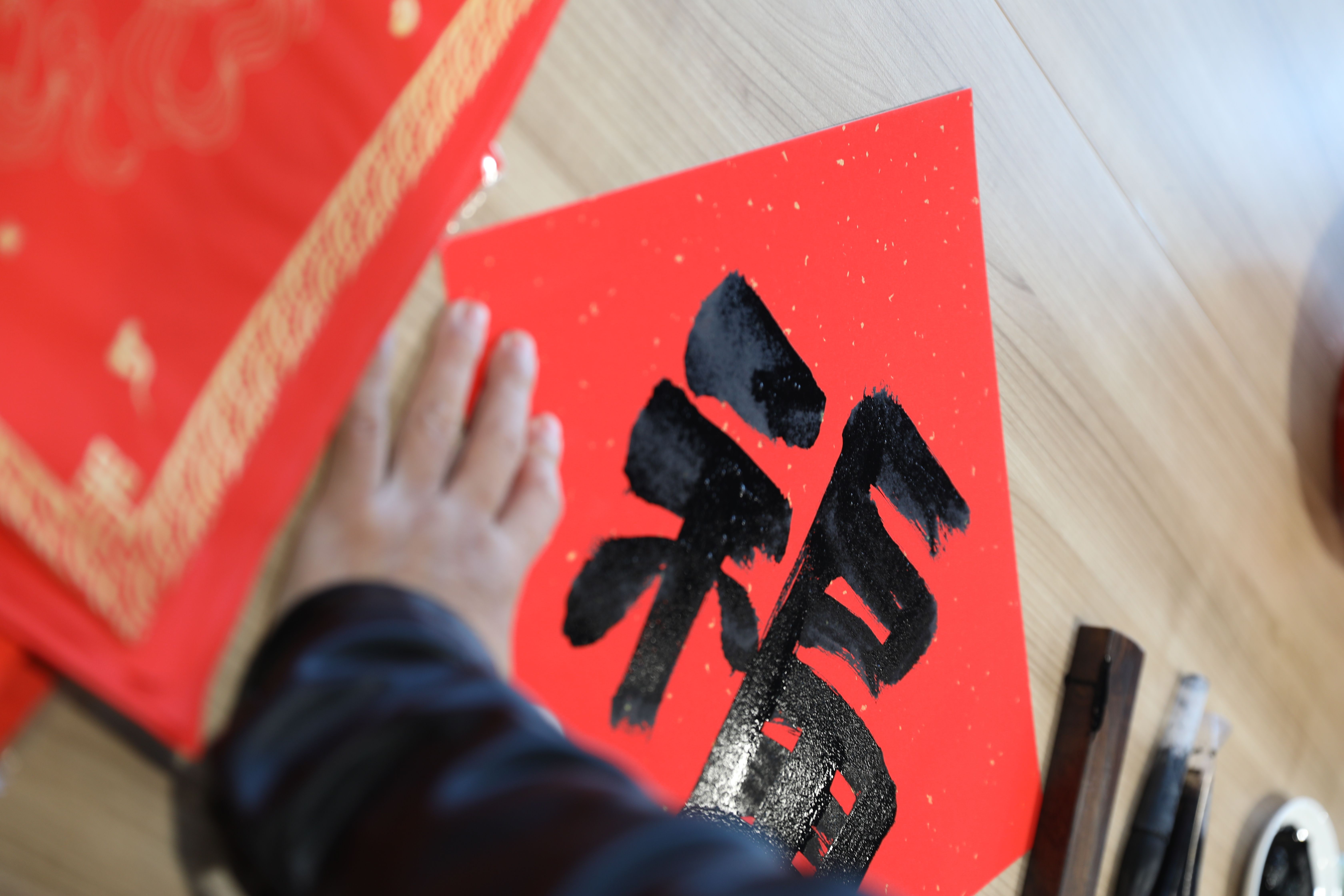 本次活動邀請了馬江畫院的9位書法家親臨現(xiàn)場,他們以筆為媒,以墨為禮,為160余名熱情參與的員工書寫春聯(lián)280余幅?;顒蝇F(xiàn)場,書法家們揮毫潑墨,筆鋒流轉(zhuǎn)間,一幅幅寓意吉祥的春聯(lián)躍然紙上,對仗工整,將對事業(yè)順?biāo)?、家庭美滿的期許融入其中;一個個飽含祝福的“?!弊謭A潤飽滿,盡顯書法藝術(shù)的韻味,傳遞著濃濃的年味。